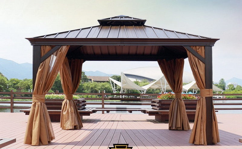 12x12 ft Aluminium Patio Gazebo with Curtain And NetHY120-G3003