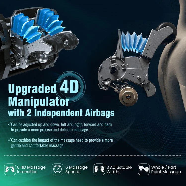 ● SL Track and Upgraded 4D Massage: The 51.5" long SL track follows the contours of the human body and ensures a larger massage area. The 4D massage robot hands offer 3 adjustable widths, 6 massage intensities, and 6 massage speeds. It also has the auto shoulder scan function for a personalized massage experience.